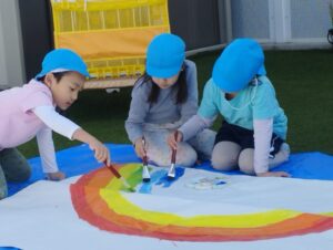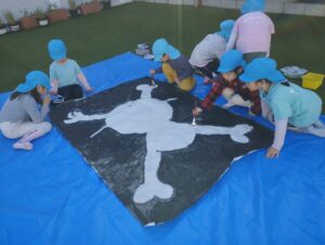5歳児さんは、3人で力を合わせ描きあげました。