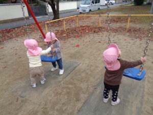 ブランコを持って前へ後ろへとゆらゆら動かしています☆