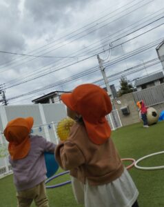 発表会の動画を楽しんだ後は、園庭で遊ぶ準備♪
