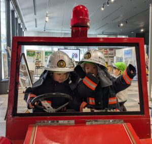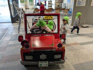 小さい消防自動車が展示してあり、子ども達は大喜びでした!