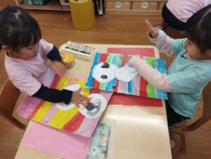 細かい所を絵の具で塗るのが難しそうでしたが頑張っていましたよ。