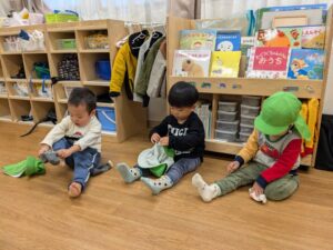 「お外に行く準備をするよ」と伝えると、自分で帽子や靴下、上着を着ます。