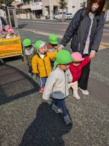 みんなと手を繋いで出発です。