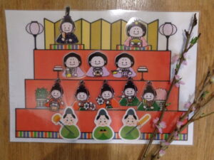 保育者から桃のお花や、ひなあられ・ひし餅などひな祭りに関するパネルシアターが出てきました。