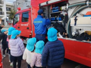 保育園には消防士の方々とかっこいい消防車が来てくれましたよ🚒