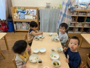 みんなで一緒に食べる給食はおいしいね。