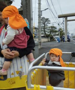 神社の周りの池には大きな鯉を発見しました。鯉を見つけて指を差して知らせてくれる姿もありましたよ🎶
