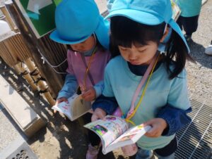 お散歩図鑑を持って行っていたので、散歩道に咲いているお花や公園に咲いていたお花を図鑑で調べましたよ📖