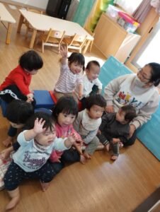 月齢の低いお友だちも、一緒に手をあげてくれます。