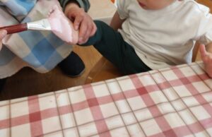「ポン」と言いながら、手をギュッと紙に押し付けている子もいました。