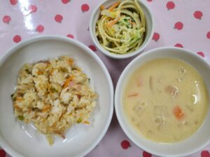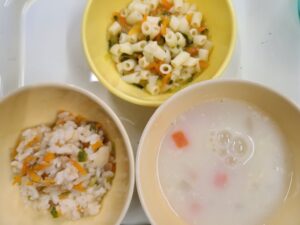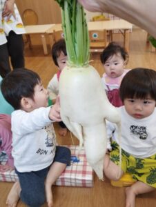 面白い大根があったので、ひまわり組のお友だちと一緒に体感!色んな所から足が「ニョキニョキ」不思議そうな表情で触っていました。