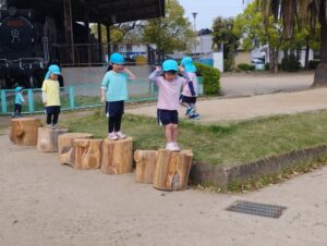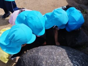 到着すると機関車に大興奮!嬉しそうに何度も見たり、石の隙間からてんとう虫が登場、みんなでしばらく観察して楽しみました。
