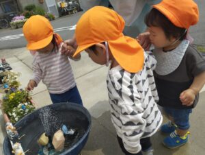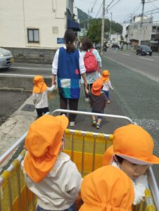 ひまわり組は一度園に戻って身支度を整えてからお散歩に行きました🌻