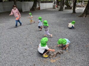 今日の目的地は神社です。いつものように、鯉や亀がいるかなと覗いたり、追いかけっこをしたりしました。