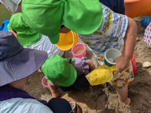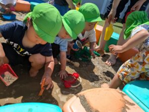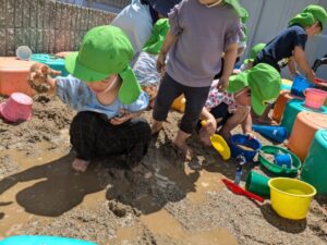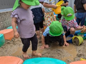 泥の感触を喜ぶ子もいれば不思議そうにしている子もいましたが、思い思いに楽しんでいましたよ😊