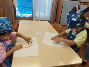 もっちもちの生地をこねて丸めてをくりかえして好きな形に伸ばしました。