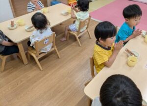 水遊びが大好きなめろん組さんは、朝のおやつからワクワク、待ち遠しい様子が見られていましたね。
