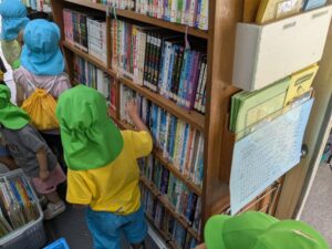 子どもたちの好きな絵本や紙芝居をたくさん借りることができましたよ😄
