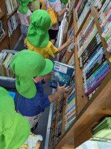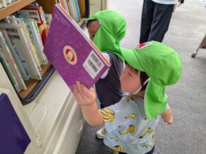 移動図書館に到着すると、車に積まれたたくさんの絵本に目移りしながらも気になる絵本を思い思いに手に取っていました📕