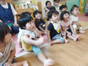 「あいうえおにぎり」の歌では、みんなで手拍子をしながら、どんな具のおにぎりが食べたいか