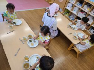 みんな上手にスプーンを使って食べられるようになってきました😊🥄