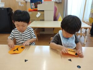 ひまわり組さんはお部屋でハロウィンのイベントで使う物を製作していましたよ🎃