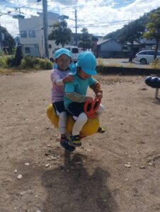 いちご組のお友だちはお散歩を楽しみ、そら組さんはみんなで元気に追いかけっこをしたり、遊具で遊んだりして過ごしました!