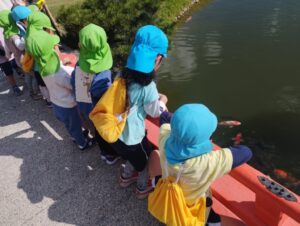 気持ちのいい秋晴れのお天気、めろん組さんとそら組さんは栗林公園に出かけました。