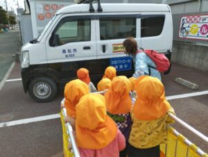 ひまわり組さんは、パトロールの車を見つけて大興奮!