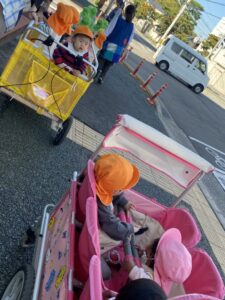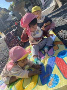 神社では、気持ち良い日差しを浴び、日光浴を楽しんだいちご組さんでした。