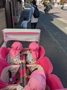 天気が良くとても気持ち良かったです。カートに乗っているお友だちも、