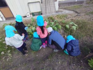 畑のじいじ(寺内さん)が来るとサツマイモの収穫をお手伝いしたり、いっしょに柿を取ったりしました🍠