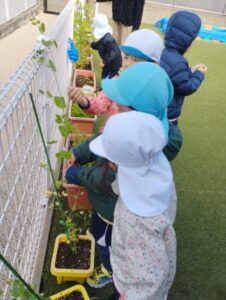 保育園に帰ってきてからは、さやえんどうの収穫✄