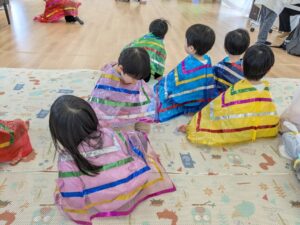 めろん組とそら組のお友だちは園バスに乗って発表会の練習に行きました🚌