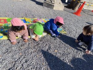 いちご組さんは、今まで石を触ることには、あまり興味を示すことはなかったのですが、昨日は、みんなが石を握ったり、手を動かしたりして、感触を楽しんでいました。いろいろなものに興味をしめしてくれている姿に、成長を感じました。