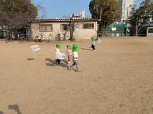 残念ながら風は吹いていなかったので、子どもたちは自力で(笑)凧揚げを楽しみました。