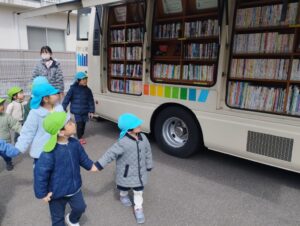 今年度最後の移動図書館。どんな絵本があるのか、みんなわくわくしていましたよ🥺