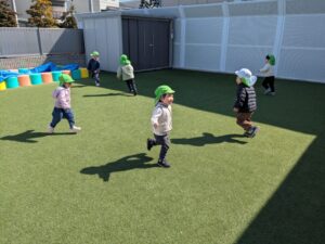 天気が良かったので、園庭で増え鬼ごっこをしていっぱい体を動かしました。
