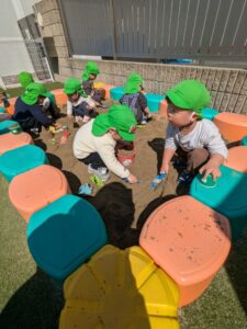 久しぶりに園庭で砂場遊びもしました。集中して楽しんでいましたね。