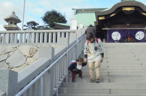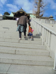 月齢の大きいお友だちは順番に神社の石段登りにも挑戦しました☆