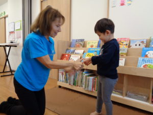 たくさん遊んだ後は…英語の始まりです。クリス先生と挨拶のお歌を歌います。
