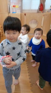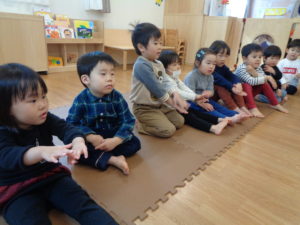 みんな早めにおやつ、トイレなどを済ませて保育室で準備万端(^^♪