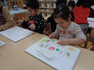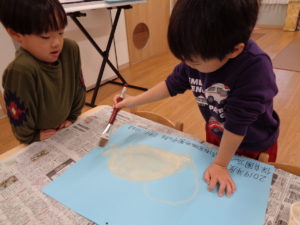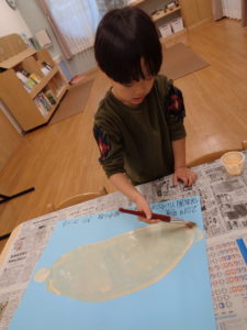 そら組は一年間の作品を綴る、表紙を作っていました。
