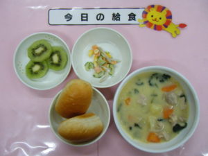 カレーの中には何が入っているかな?の質問に「にんじん!!」「じゃがいも!!」
