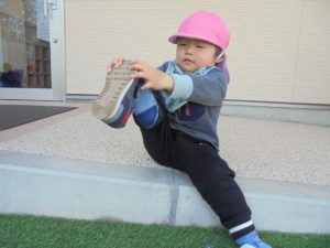 頑張って靴をはこうとしていますよ😄