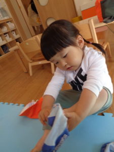ひまわり組さん、自分でお外に出る準備をしています!頑張っていますよ😆!