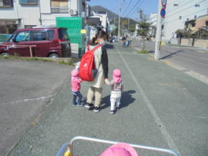 いちご組さん、先生と手をつないでお散歩へ👟