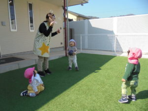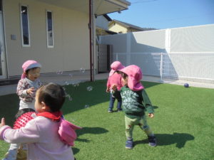 園庭でシャボン玉もしました💕