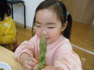 アスパラを触ったり、匂いを嗅いだりしました(#^^#)