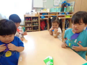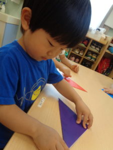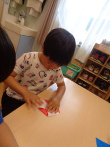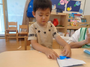 そら組さんは折り紙をしましたよ。